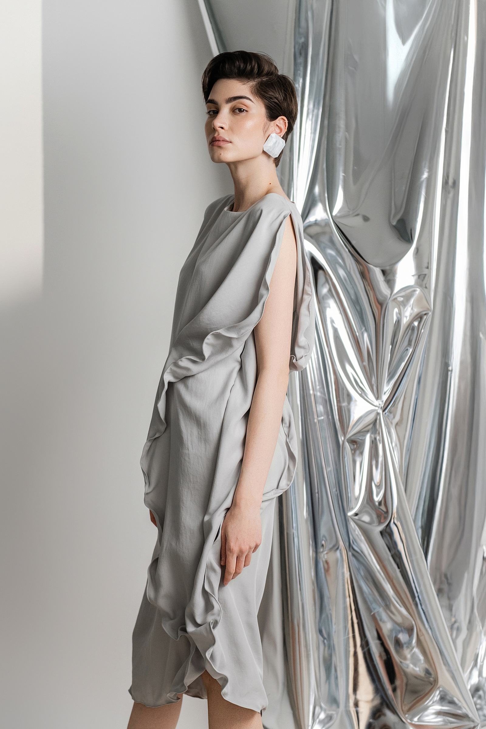 Inspirirana dijalogom između prirode i suvremene ženstvenosti, kolekcija istražuje ravnotežu ondje gdje se organska lakoća susreće s profinjenim, modernim izričajem. Upravo u tom međuprostoru, liminalnom stanju između definiranog i intuitivnog, oblikuje se estetika koja nije strogo određena, već se razvija kroz osjećaj.