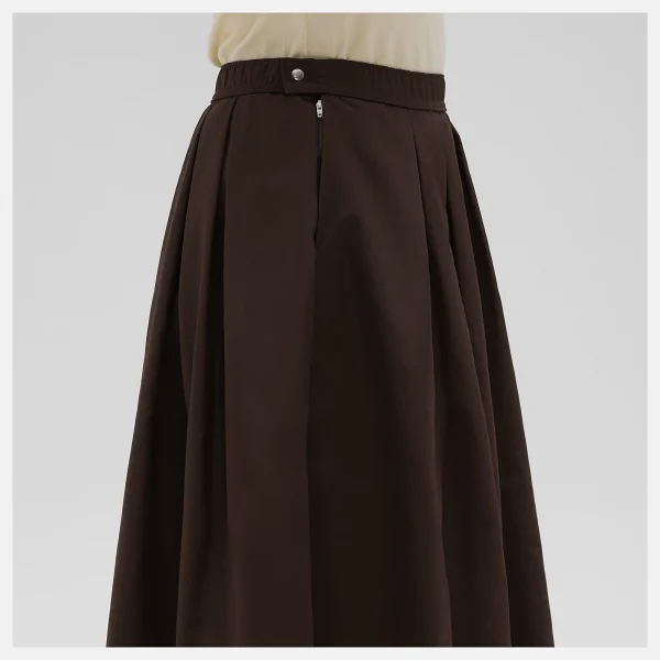 Ova suknja dolazi u dvjema zemljanim nijansama – tamnosmeđoj i svjetlosmeđoj koje pristaju uz sve. Naravno, ne možemo ne spomenuti i pažljivo promišljene detalje poput suptilnih bočnih džepova te lagane podstave koja joj pruža dodatnu dozu ležernosti i chica.
